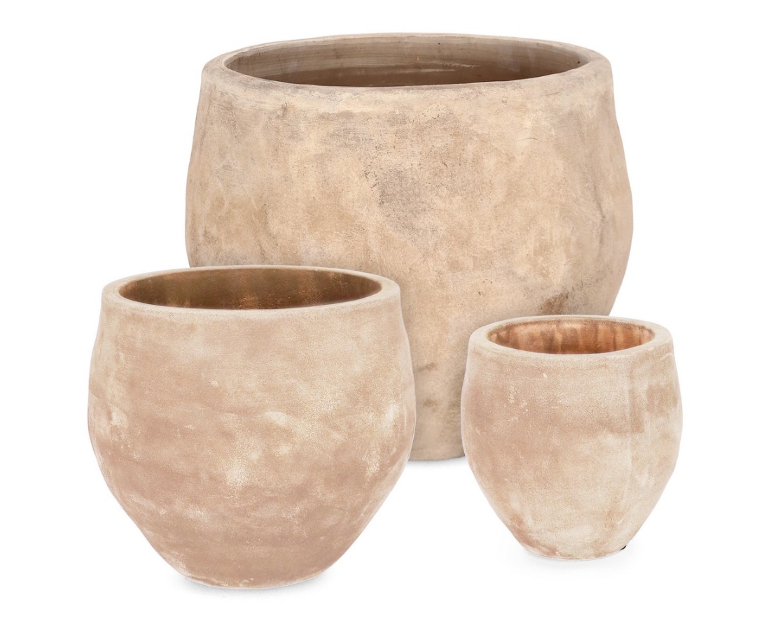 Ręcznie wykonany zestaw donic z terakoty w trzech rozmiarach to naturalna i dekoracyjna ozdoba ogrodu, tarasu lub balkonu.