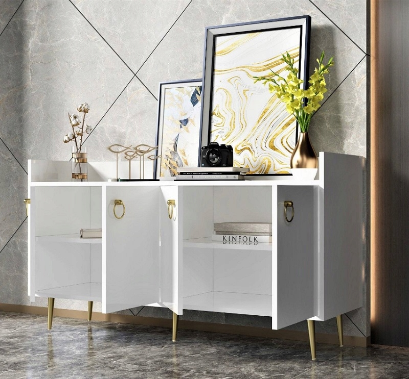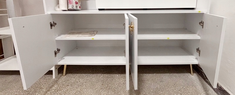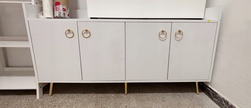 Komoda posiada 4 przegródki z drzwiczkami, dzięki czemu doskonale nadaje się do przechowywania różnych przedmiotów.