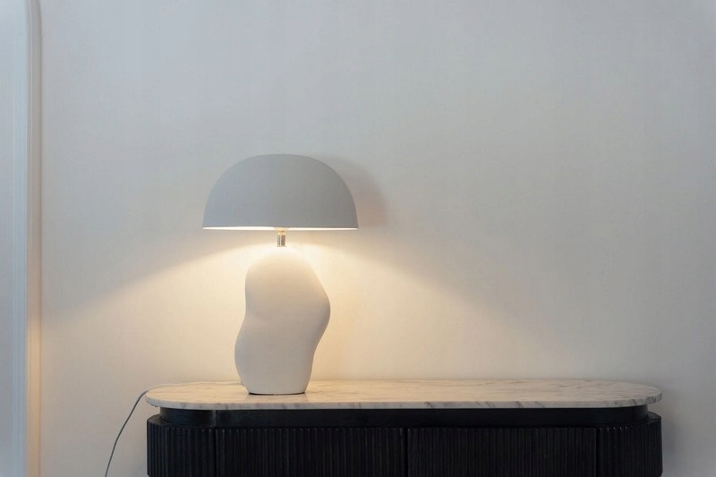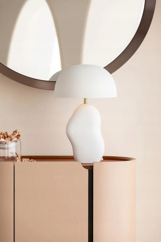 Lampa stołowa Nube to eleganckie oświetlenie inspirowane naturą, które zachwyca organicznym, miękkim kształtem oraz minimalistyczną białą kolorystyką.