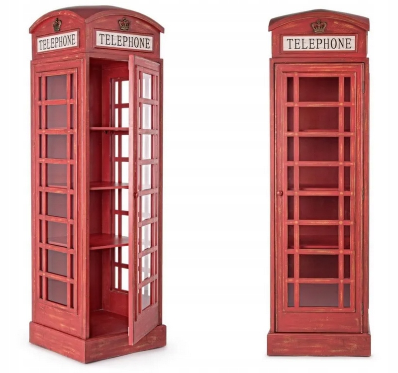 Oryginalny regał w kształcie kultowej londyńskiej budki telefonicznej to wyjątkowy mebel, który natychmiast przyciąga uwagę i nadaje wnętrzu niepowtarzalny charakter.