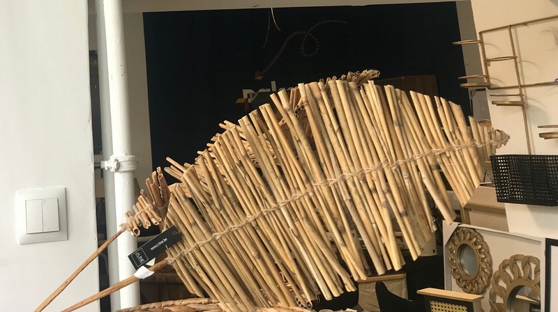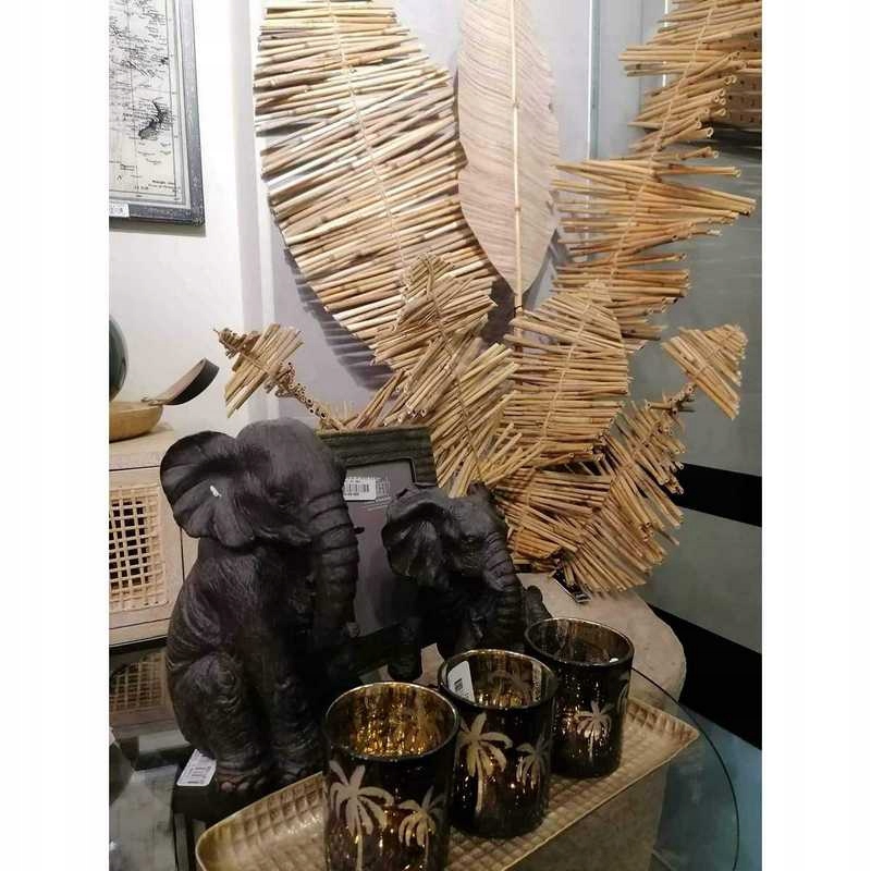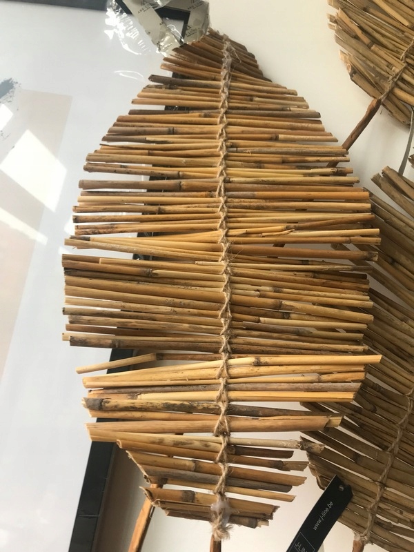 Ozdoba w kształcie liścia wykonana została z połączonych ze sobą różnej wielkości elementów bambusa.