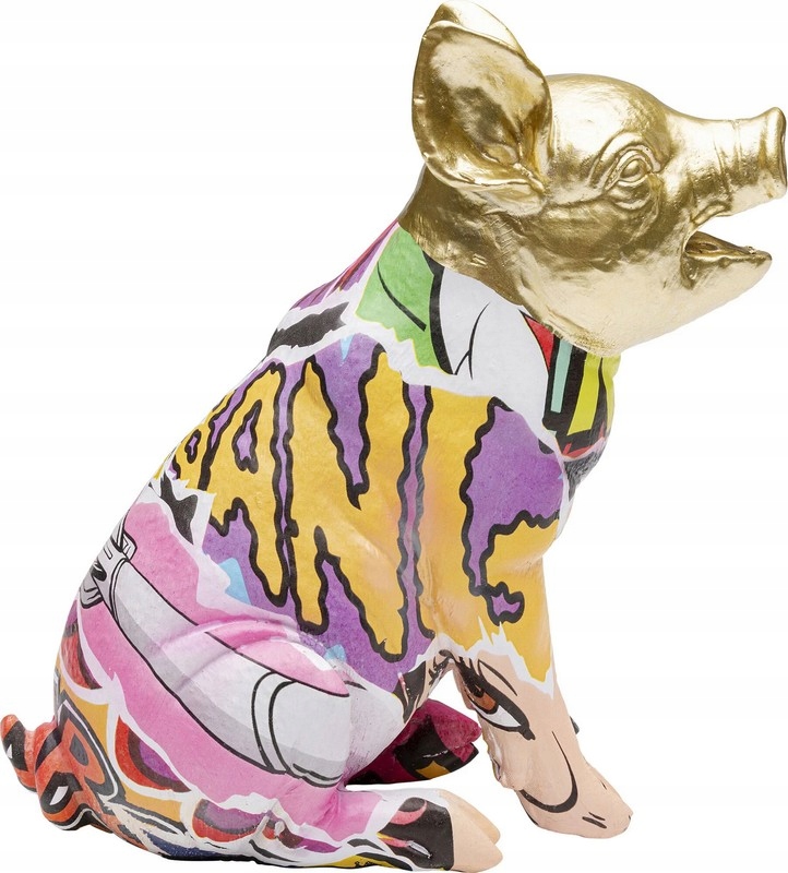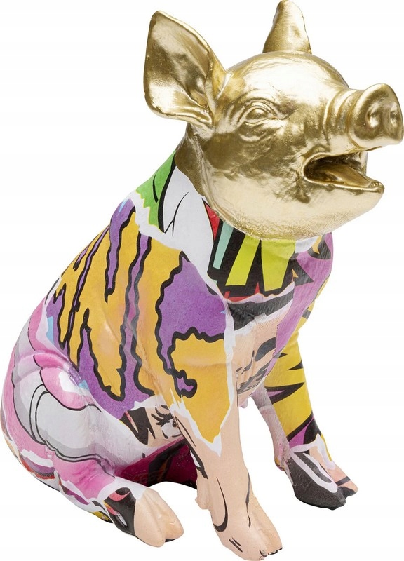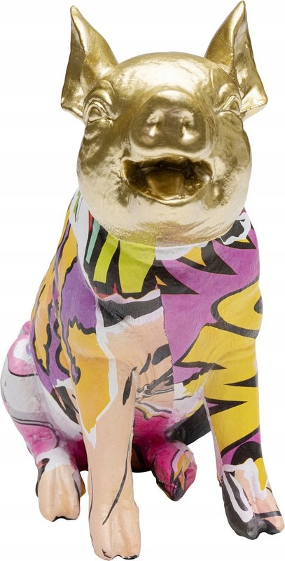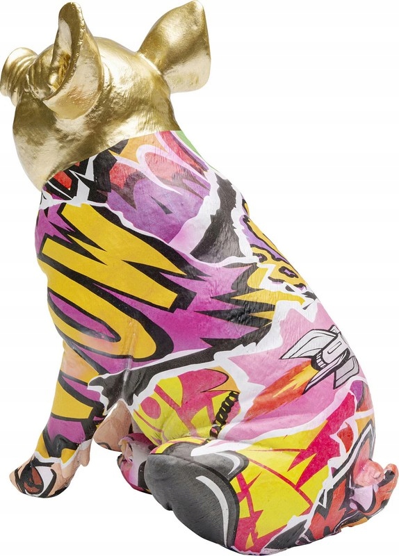 Ta dekoracyjna figurka świnki to wyraziste połączenie miejskiego stylu graffiti z elegancją lśniącego złota.