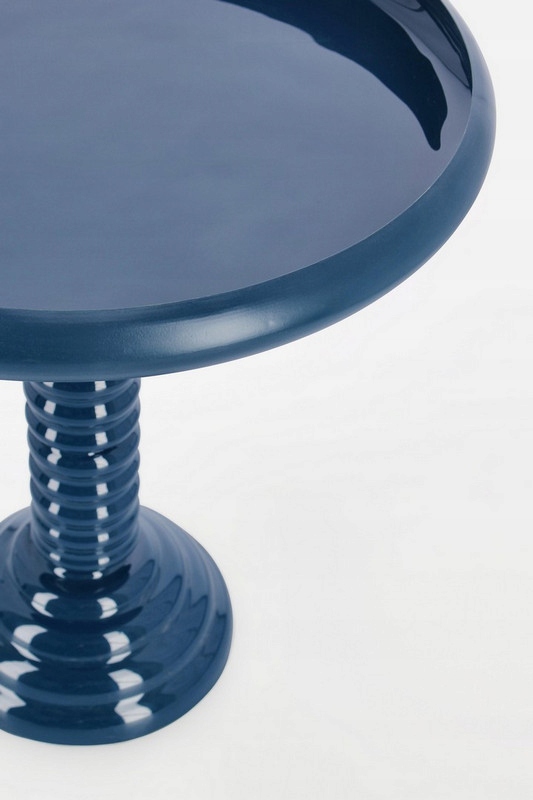 Okrągły blat z podniesionym rantem sprawia, że napoje, dekoracje czy drobne akcesoria pozostają na swoim miejscu, a całość prezentuje się niezwykle stylowo.