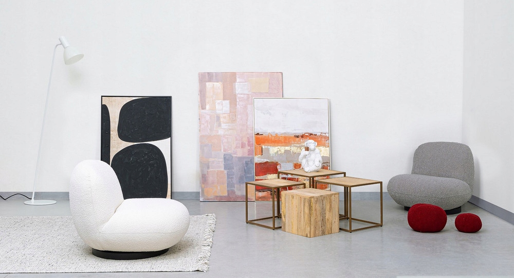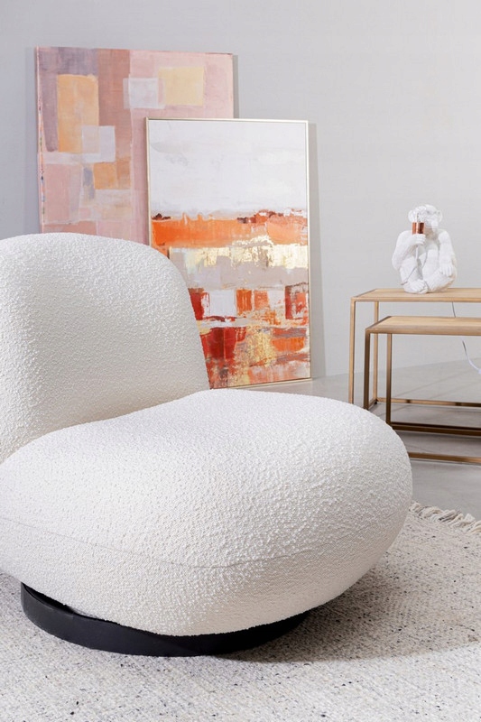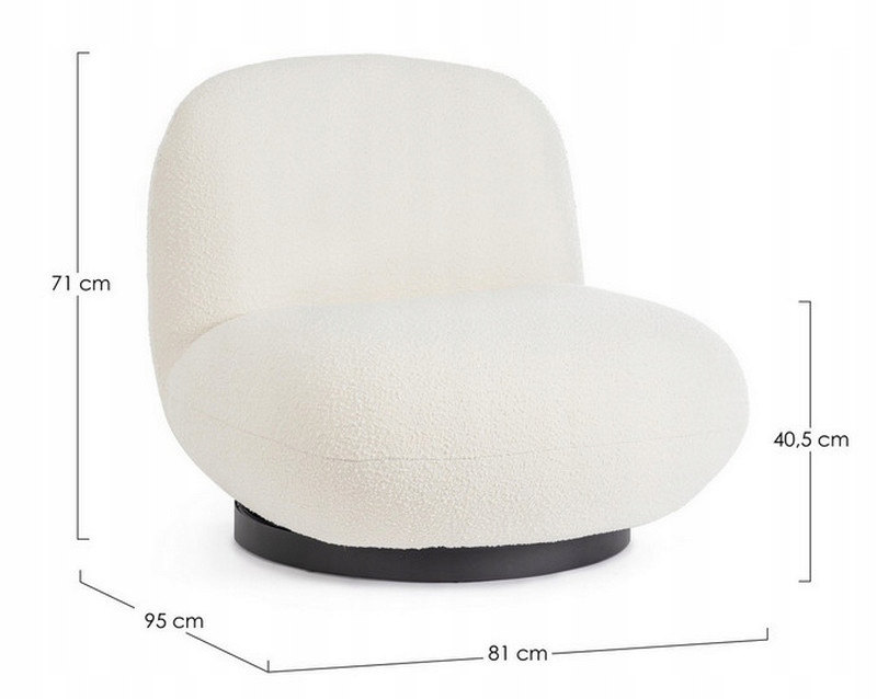 Ten wyjątkowy mebel zachwyca organiczną formą oraz modną tkaniną bouclé (bukla), która wyróżnia się miękką fakturą i niepowtarzalnym charakterem.