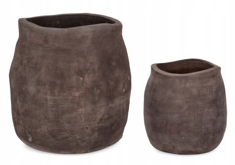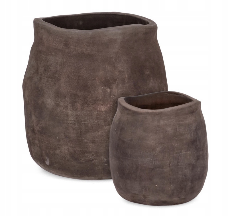 Donice wykonane z naturalnej terakoty w głębokim, ciemnym odcieniu brązu.
