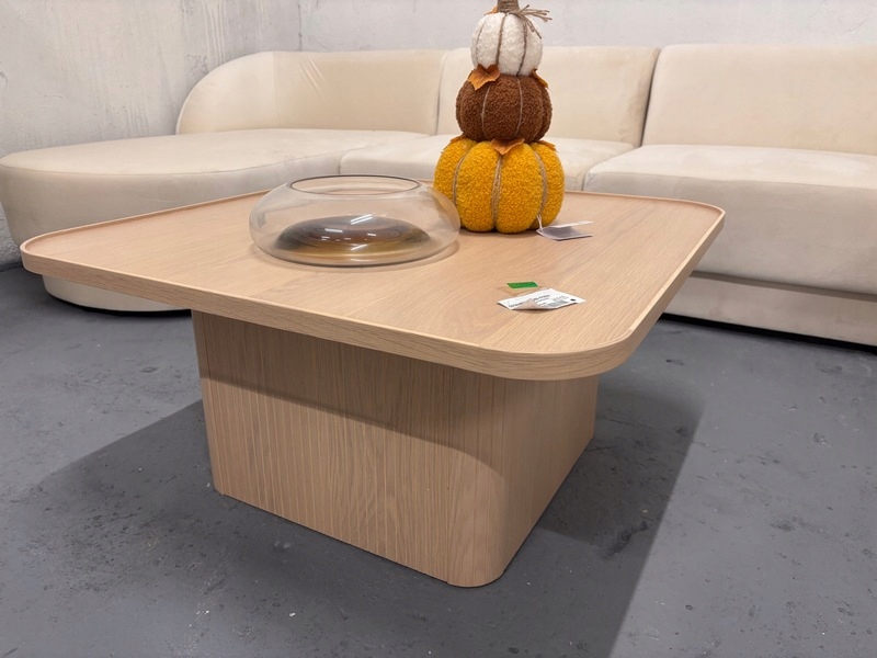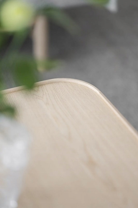 Blat o zaokrąglonych narożnikach nadaje stolikowi miękki, subtelny charakter, idealnie wpisujący się w modne aranżacje wnętrz.