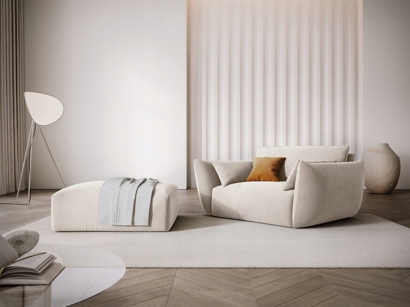 Nisko osadzone, głębokie siedzisko, tapicerowane miękkim materiałem i komfortowe wypełnienie zapewniają idealne miejsce do relaksu.