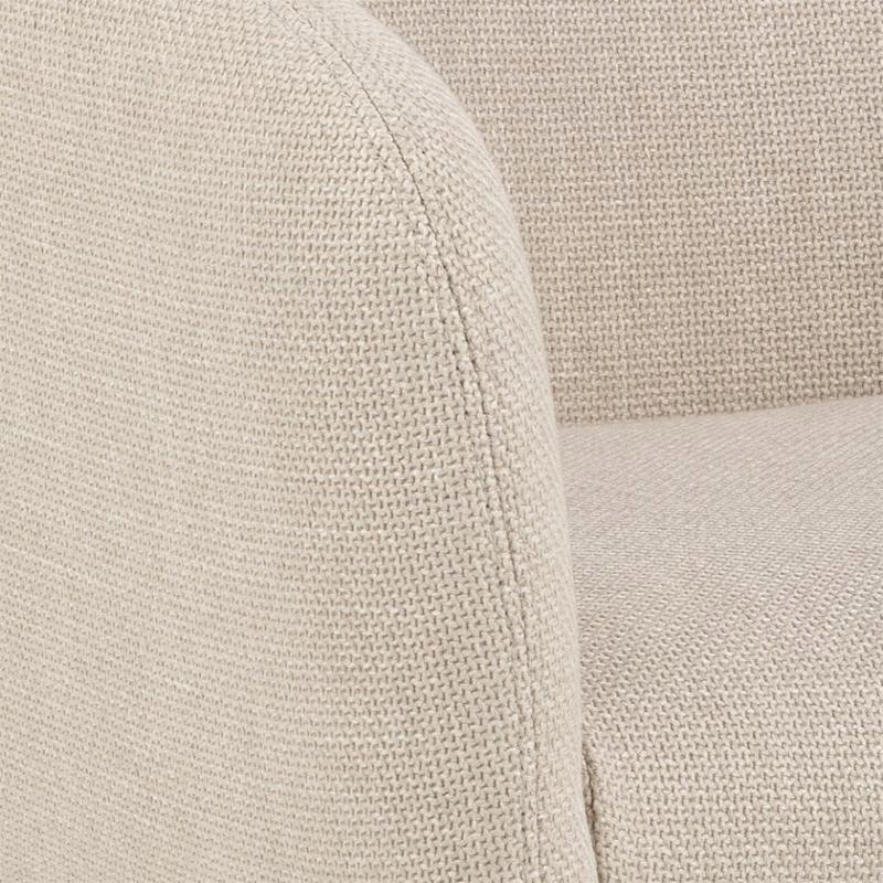 Wyprofilowane, lekko otulające siedzisko dopasowuje się do ciała, zapewniając wygodę podczas relaksu, czytania i oglądania telewizji. Tapicerka w odcieniu jasno-beżowym z subtelnym efektem dwukolorowym nadaje wnętrzu elegancji i ciepłego charakteru.