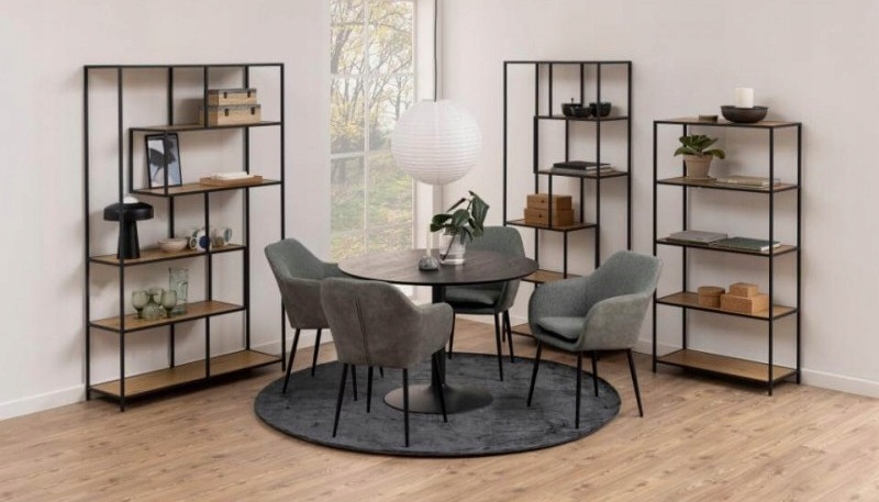 Regał Seaford łączy w sobie prostotę formy z nowoczesną estetyką.