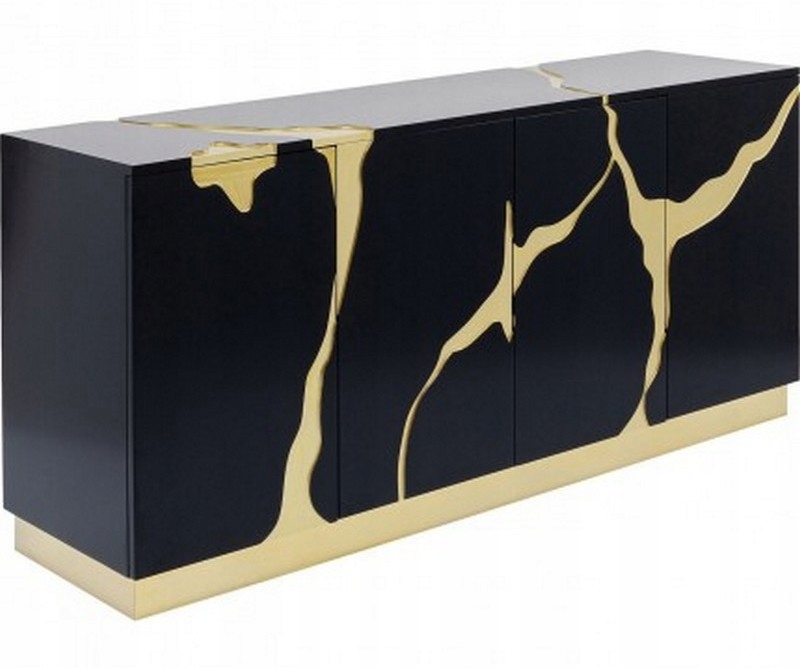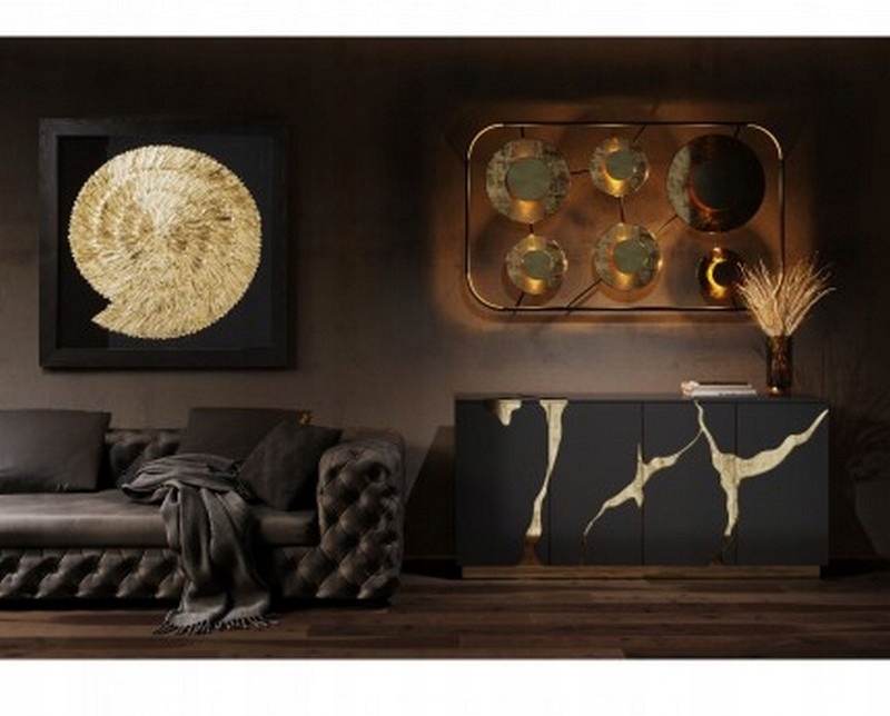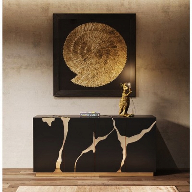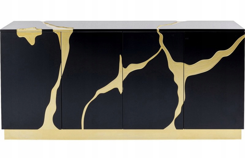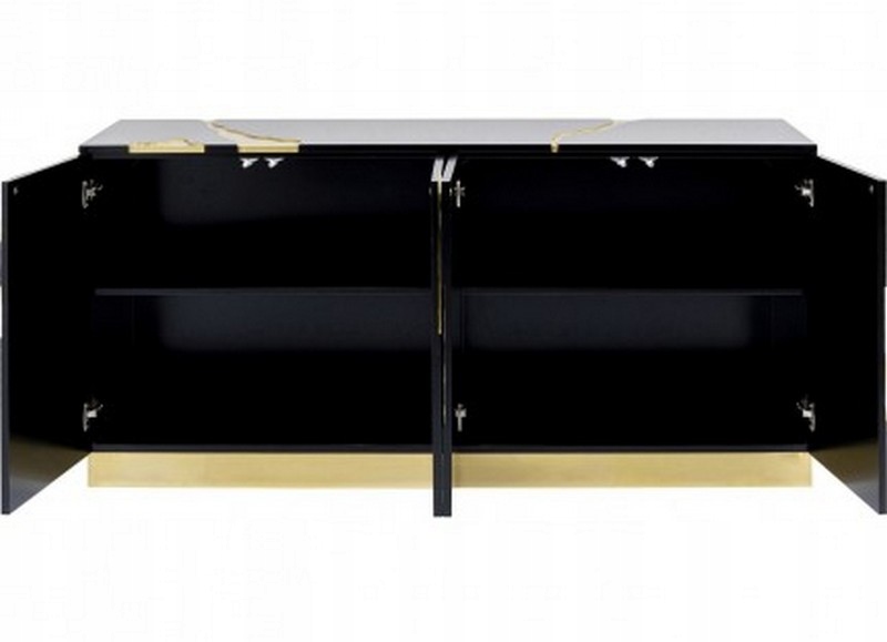 Elegancka czarno-złota kolorystyka oraz zdobienia w postaci rzeźbionych złotych detali nadają meblowi wyjątkowego charakteru, wprowadzając do wnętrza efektowny akcent glamour.