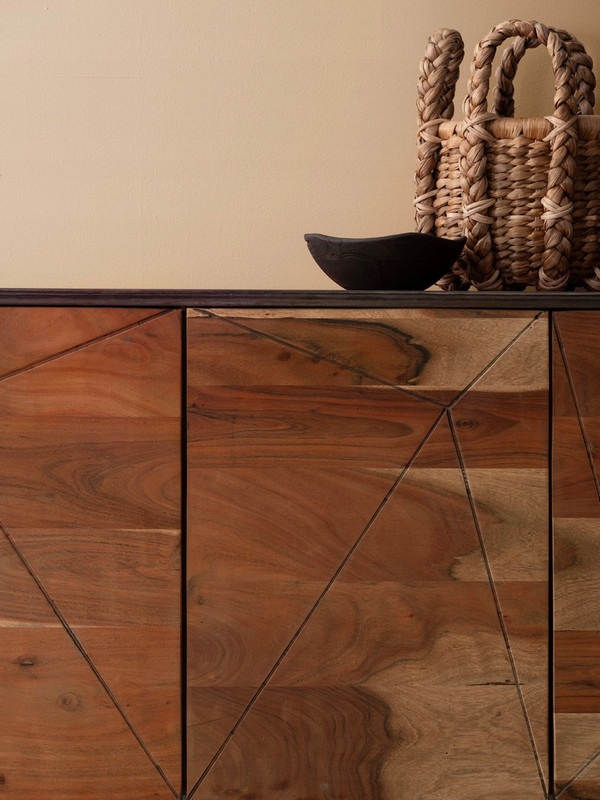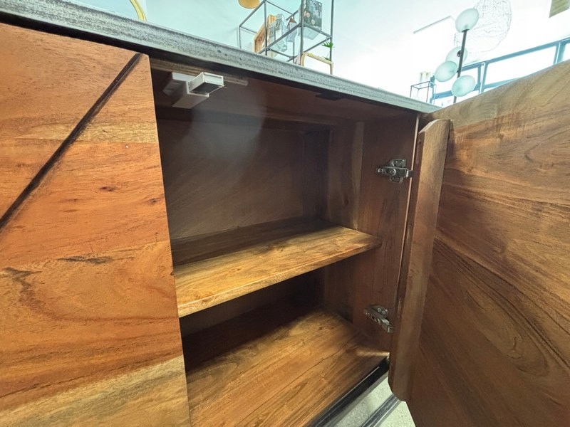 Wykonana z połączenia litego drewna akacjowego oraz stali malowanej proszkowo, zachwyca swoją solidnością i oryginalnym stylem.