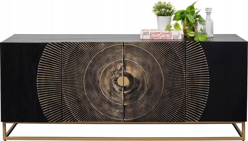 Kredens Madeira to wyjątkowy mebel, który łączy elegancję ciemnego brązu z luksusowym akcentem złotej, metalowej ramy.