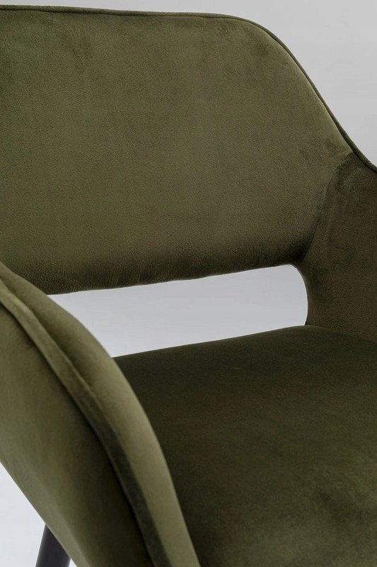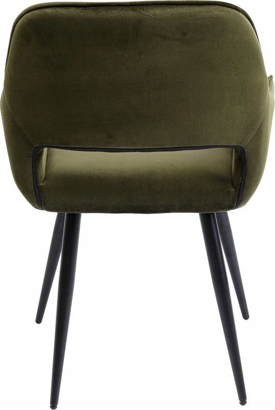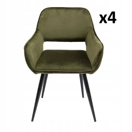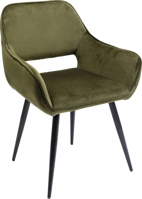 Zielone krzesło tapicerowane o aksamitnym wyglądzie to stylowe połączenie elegancji i subtelnego retro designu.