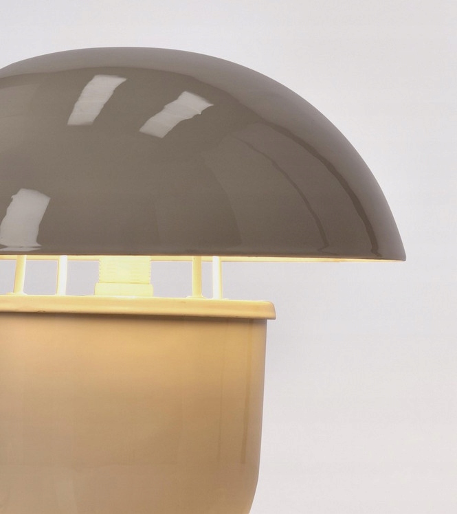 Jej kształt inspirowany kultowym stylem retro „mushroom lamp” sprawia, że doskonale komponuje się z wnętrzami nowoczesnymi, skandynawskimi czy industrialnymi.