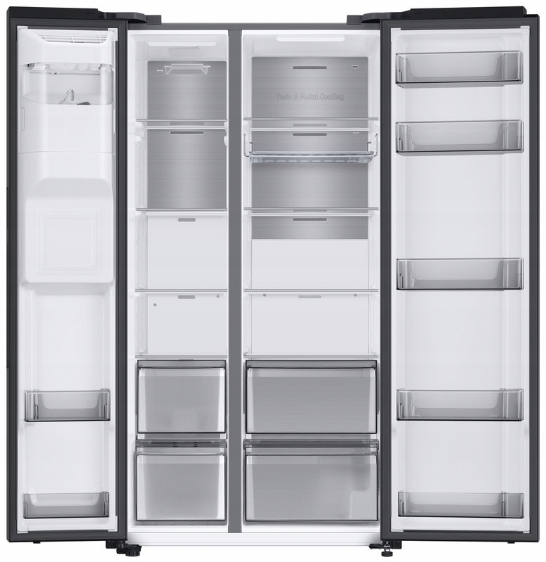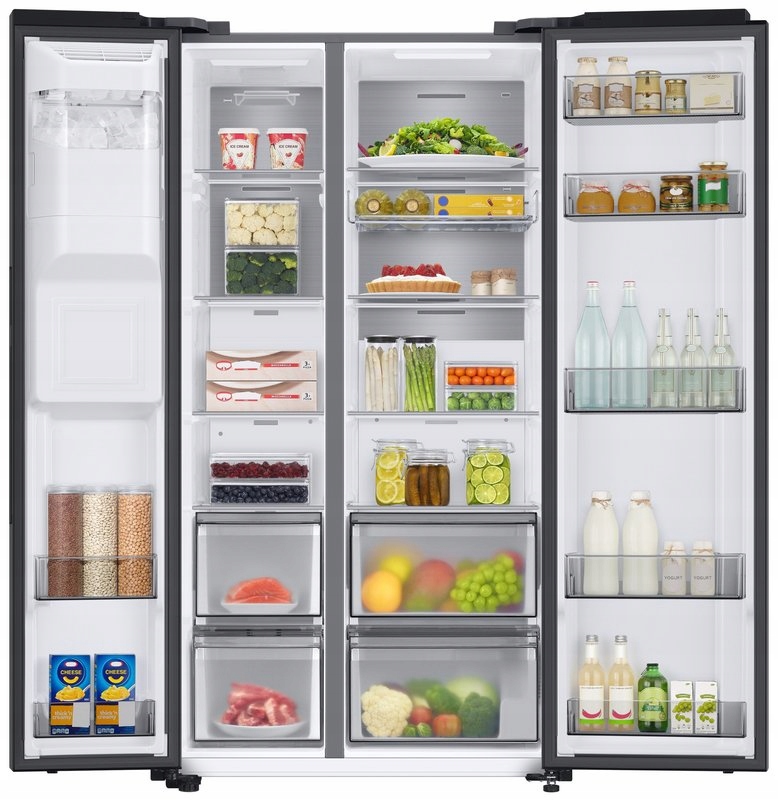 Dwudrzwiowa lodówka Samsung RS68A884CB1 ma dużą pojemność. W chłodziarce zmieścisz 409 litrów, a w zamrażalniku 225 litrów, co łącznie umożliwia przechowywanie w niej 634 litrów produktów. Umożliwia to system SpaceMax™, czyli połączenie cienkich ścianek i wydajnego systemu izolacyjnego.