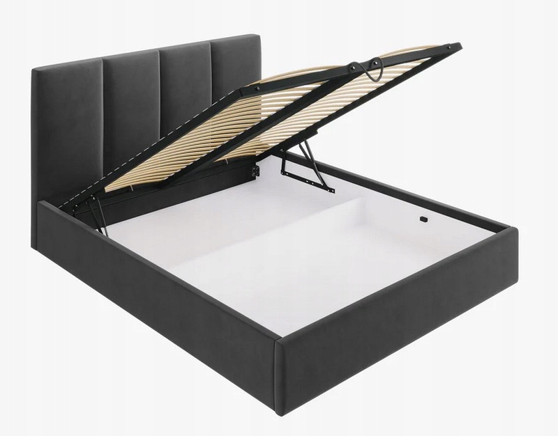 Łóżko posiada wbudowany obszerny schowek na pościel.