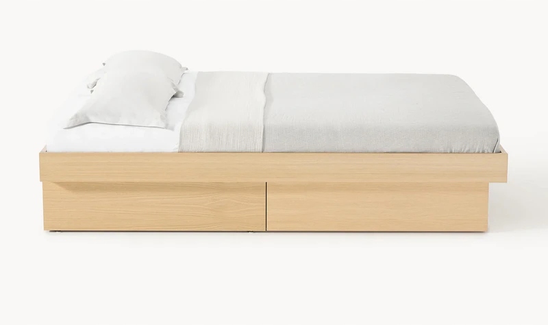 Łóżko z drewna z dwiema praktycznymi szufladami to funkcjonalne i estetyczne rozwiązanie do nowoczesnej sypialni.