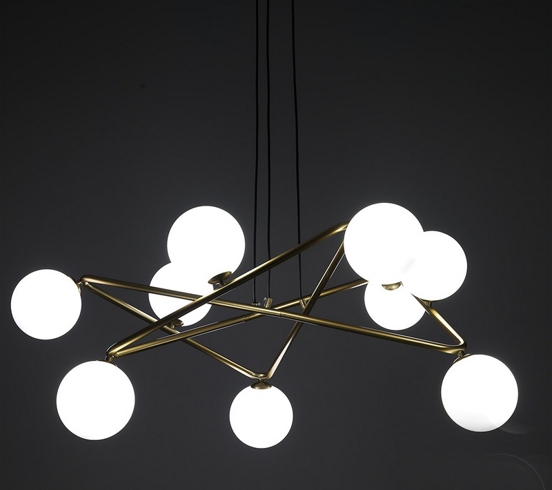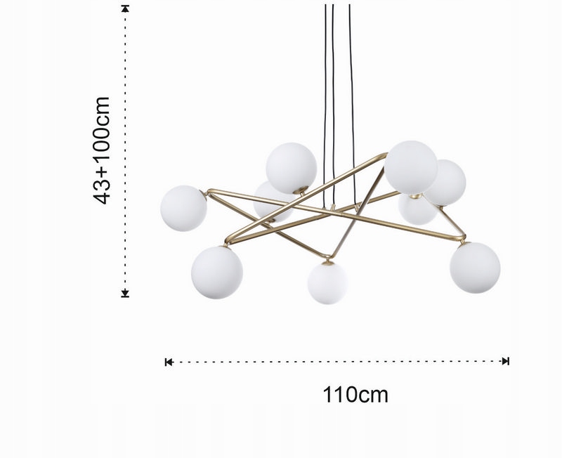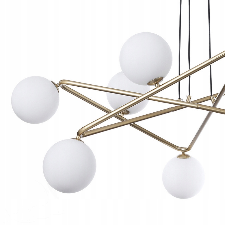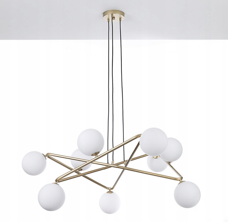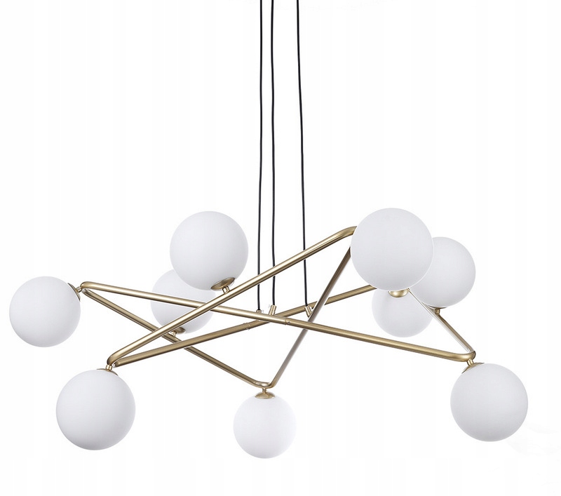 Wyposażona w dziewięć szklanych kloszy równomiernie rozprowadzających światło, nada wnętrzu ciepły, przytulny blask.