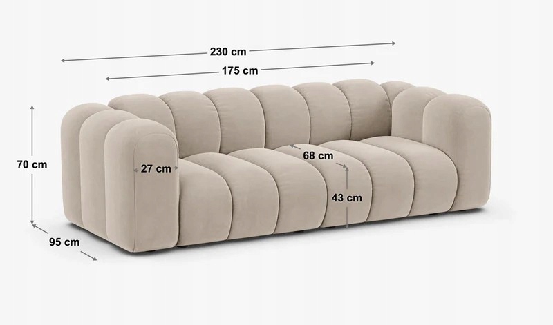 Lupine to sofa dla osób, które cenią wygodę i nowoczesny styl. Jej miękkie, zaokrąglone linie i dekoracyjne przeszycia nadają wnętrzu lekkości i przytulności. Zamiast tradycyjnych kątów – płynne kształty, które zachwycają formą i funkcjonalnością.