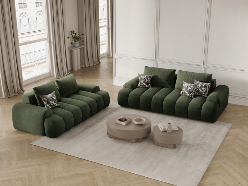 Designerska sofa Simona CXL by Christian Lacroix to połączenie komfortu i luksusowego stylu. Głęboka zieleń oraz subtelny połysk welurowej tapicerki sprawiają, że kanapa staje się centralnym punktem salonu i podkreśla charakter nowoczesnych, glamour i modern classic aranżacji.