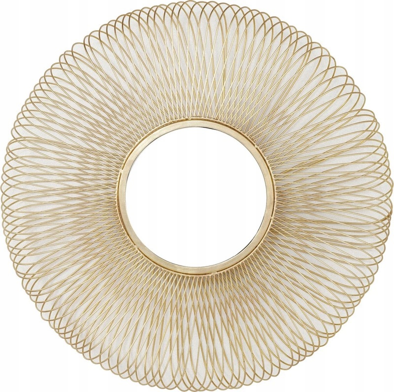 Okrągła forma oraz efektowna złota rama sprawiają, że lustro staje się centralnym punktem aranżacji, optycznie powiększając przestrzeń i rozświetlając pomieszczenie.