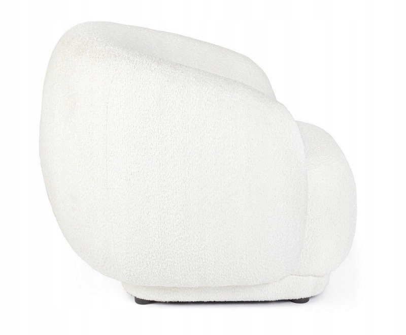 Bo łączy komfort, elegancję i nowoczesny design. To mebel, który nie tylko zapewnia wygodne miejsce do siedzenia, ale również dodaje wnętrzu klasy i wyjątkowego charakteru dzięki subtelnej, białej tkaninie bouclé.
