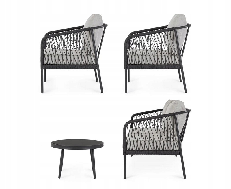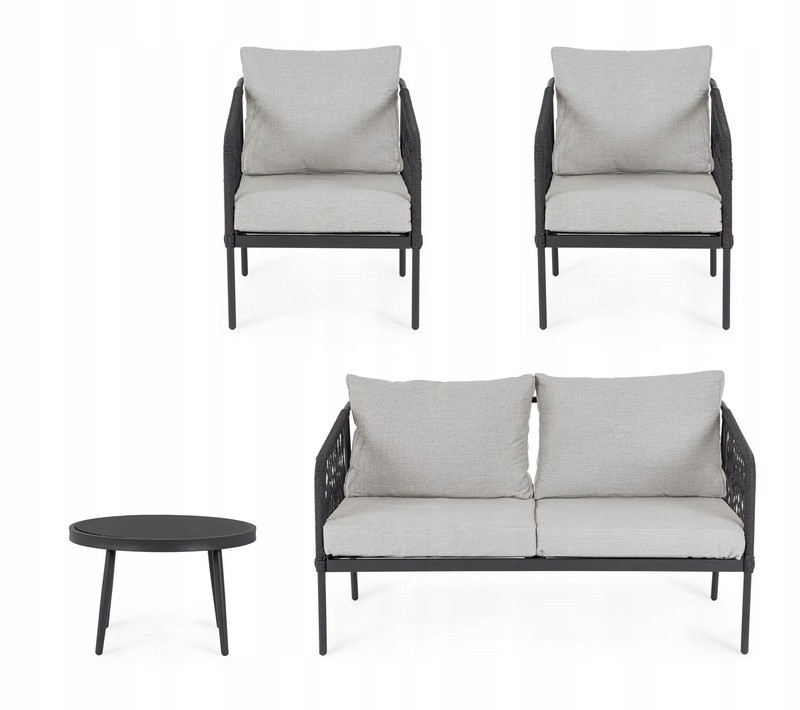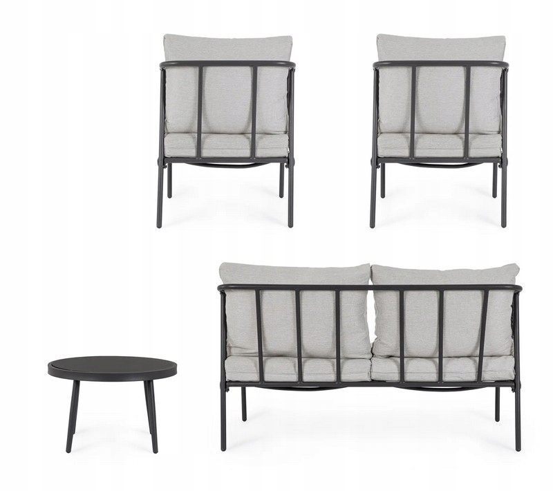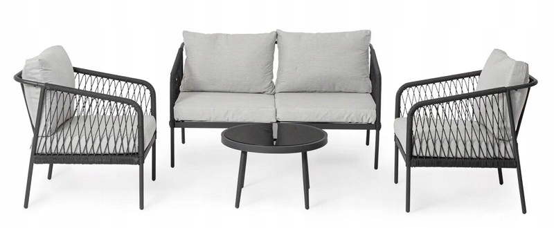 Lekka aluminiowa konstrukcja malowana proszkowo zapewnia trwałość i odporność na warunki atmosferyczne, a wygodne poduszki zwiększają komfort codziennego użytkowania.