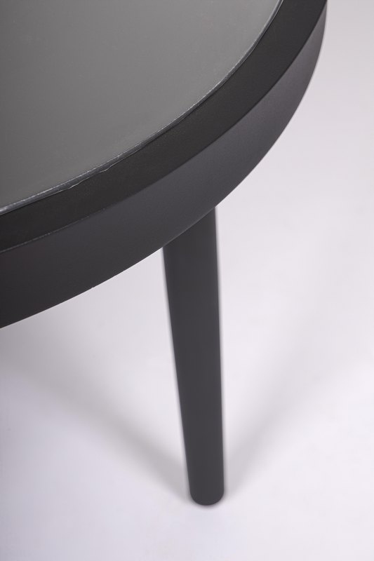 Zestaw uzupełnia praktyczny stolik z eleganckim blatem z hartowanego szkła.