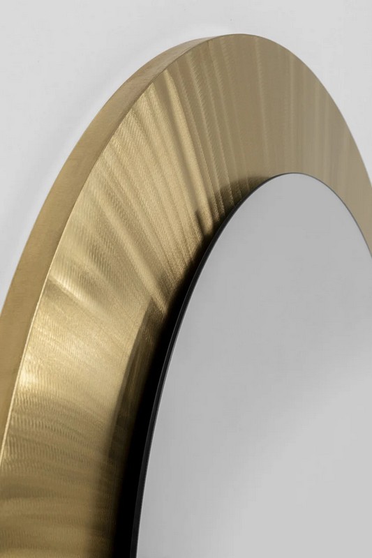 Okrągła forma oraz ozdobna rama w złotym kolorze z tytanowym efektem nadają wnętrzu luksusowego charakteru i subtelnego blasku.