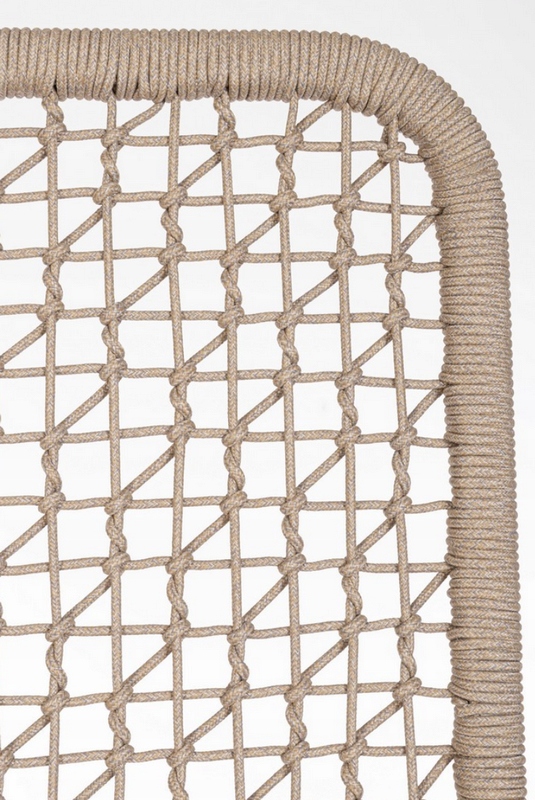 Wypełnienie stanowi pleciona lina Olefin (100% polipropylen), materiał ceniony w meblach ogrodowych za odporność na wilgoć i promieniowanie UV.