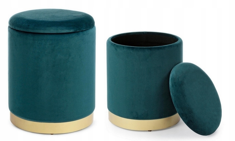 Dodatkowo każda pufa posiada praktyczny schowek, idealny do przechowywania drobiazgów, tekstyliów lub akcesoriów domowych.