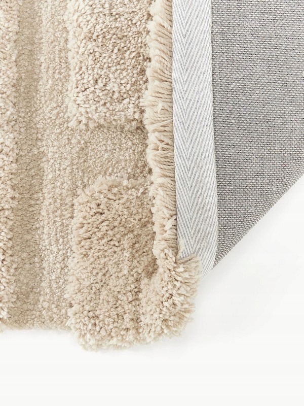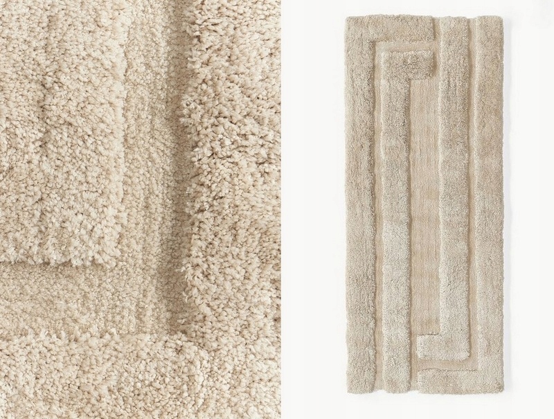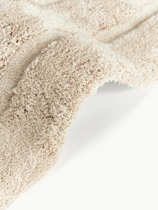 Należy pamiętać, że ręcznie tuftowane dywany mogą wydawać się jaśniejsze lub ciemniejsze w zależności od kąta padania światła i ułożenia włosia.
