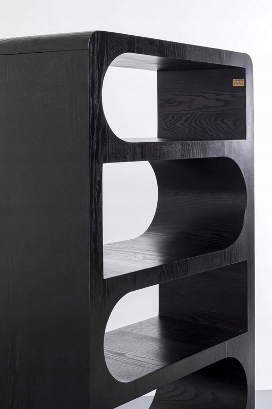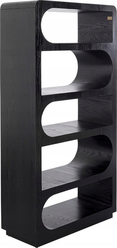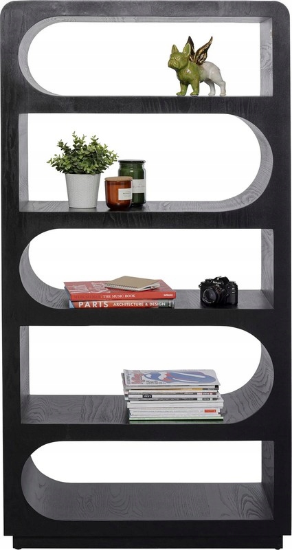 Ręcznie wykonany regał stojący Forma marki Kare Design to wyrazisty element wyposażenia wnętrza, który łączy naturalne drewno z nowoczesnym, czarnym wykończeniem.