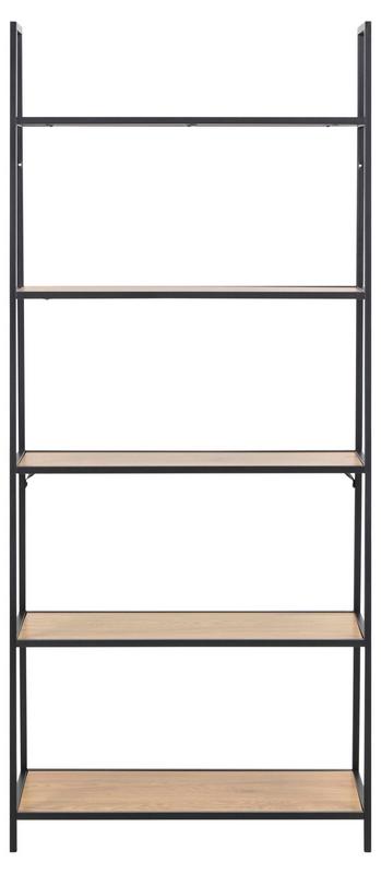 Konstrukcja z matowej, malowanej proszkowo czarnej stali oraz półki w dekorze surowego dębu dzikiego tworzą ponadczasowe połączenie pasujące do salonu, biura lub sypialni.