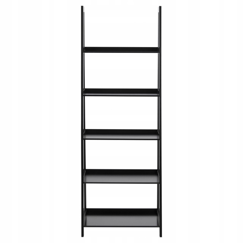 Stabilna, malowana rama z MDF połączona z pięcioma pojemnymi półkami tworzy lekką, drabinkową formę, idealną do salonu, biura czy sypialni.