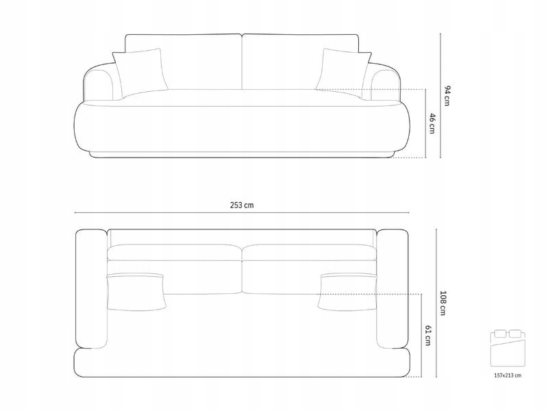 Kanapa wyposażony jest w funkcję spania oraz praktyczny schowek na pościel, dzięki czemu świetnie sprawdzi się zarówno w salonie, jak i w pokoju gościnnym.
