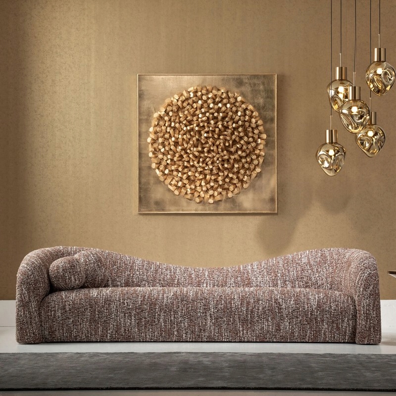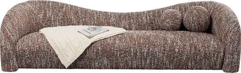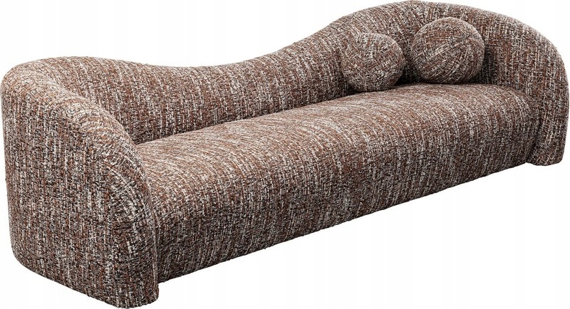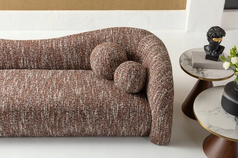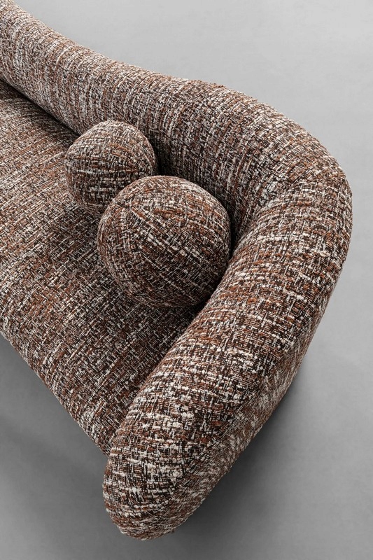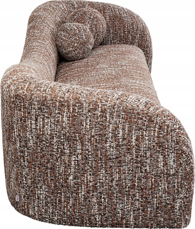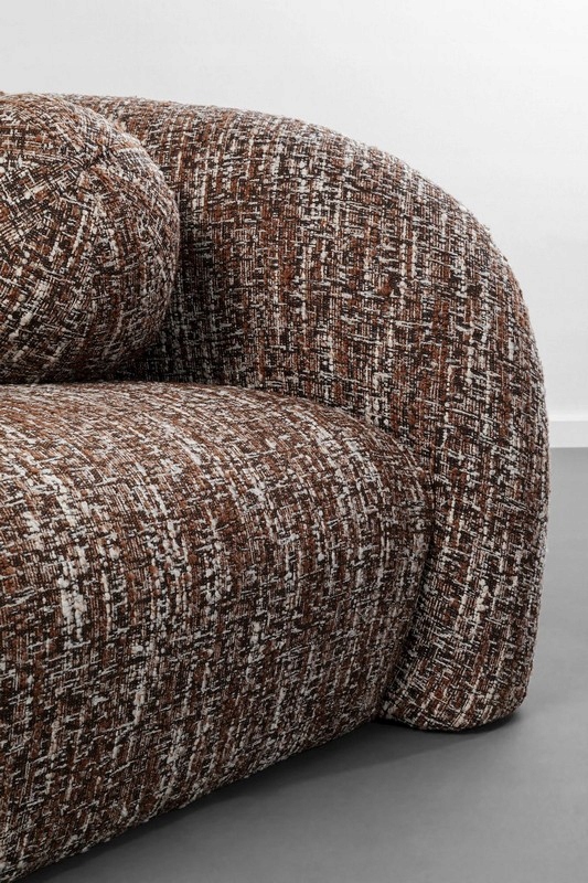 Tapicerka w melanżowym odcieniu brązu dodaje całości elegancji i naturalnego ciepła, a jej uniwersalny charakter pozwala łatwo dopasować sofę do wnętrz nowoczesnych, organic modern, boho czy soft loft.