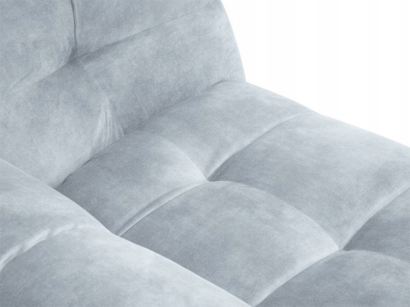 Jej jasnoniebieska tapicerka z miękkiego, szlachetnego aksamitu emanuje spokojem i subtelną elegancją, idealnie wpisując się w estetykę zarówno klasycznych, jak i nowoczesnych wnętrz.