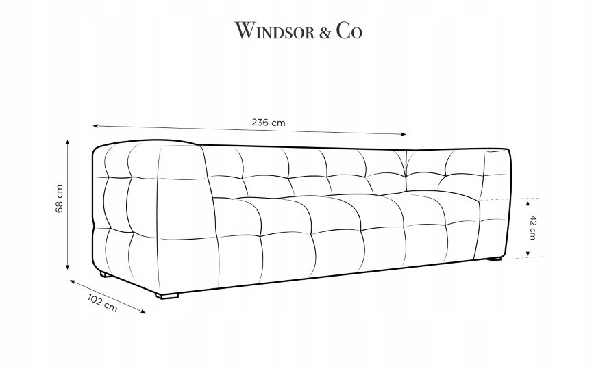 Pikowania nawiązują do stylu Chesterfield, wprowadzając nutę brytyjskiego szyku, a przestronne siedzisko zapewnia wygodę nawet podczas długich wieczorów spędzanych w gronie bliskich.