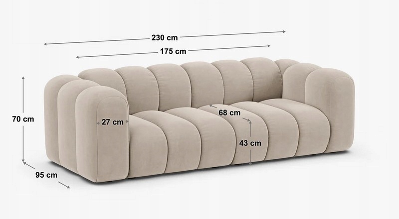 Lupine to sofa dla osób, które cenią wygodę i nowoczesny styl. Jej miękkie, zaokrąglone linie i dekoracyjne przeszycia nadają wnętrzu lekkości i przytulności. Zamiast tradycyjnych kątów – płynne kształty, które zachwycają formą i funkcjonalnością.