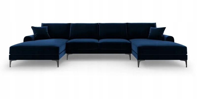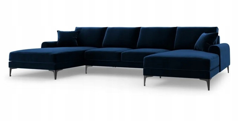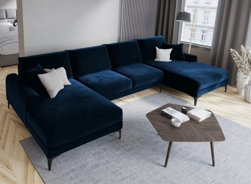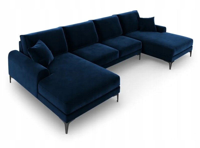 Sofa modułowa panoramiczna w kształcie litery U to wyjątkowe połączenie elegancji i komfortu, które odmieni każdy salon. Tapicerowana miękkim aksamitem w odcieniu królewskiego błękitu, zachwyca głębią koloru i subtelnym połyskiem, tworząc efekt luksusowej przestrzeni wypoczynkowej. Czarne nogi dodają nowoczesnego charakteru i podkreślają wyrafinowany design.