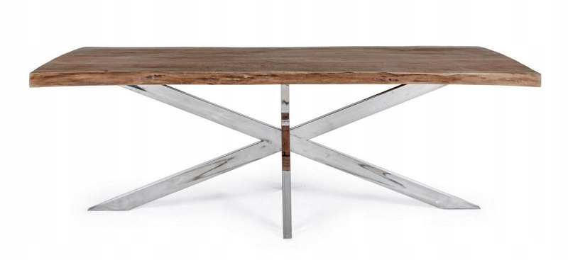 Blat stołu został wykonany z oryginalnych sekcji pnia akacjowego, dzięki czemu każdy egzemplarz jest unikalny i niepowtarzalny.