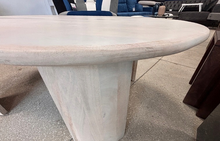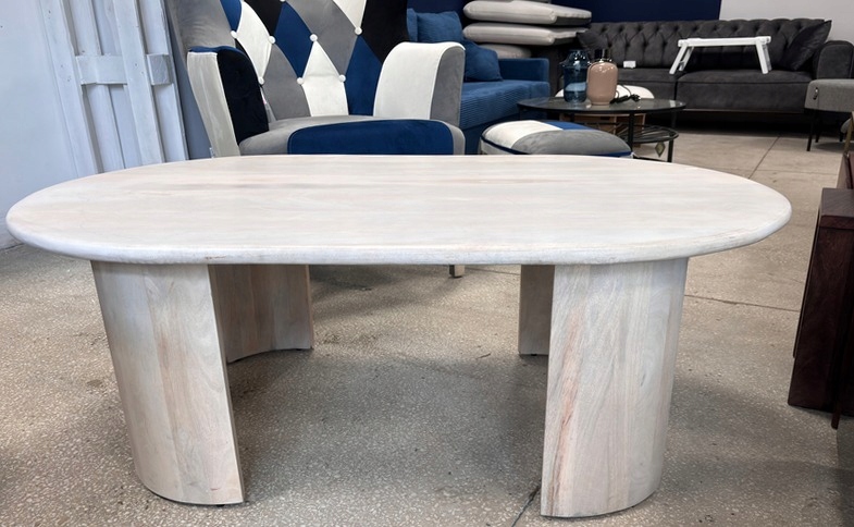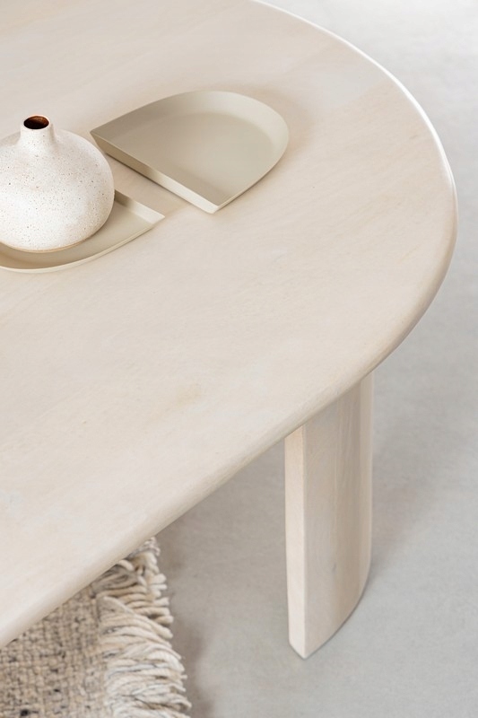 Struktura stolika wykonana została z drewna mango z wykończeniem na bazie nitrocelulozy.
