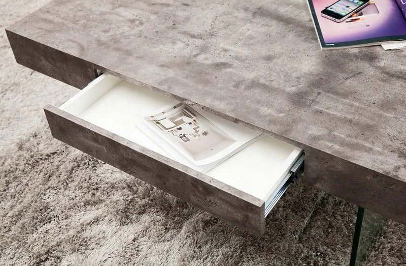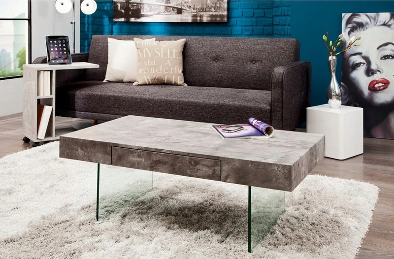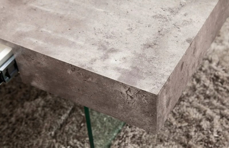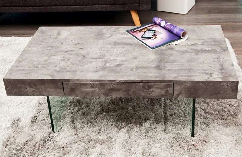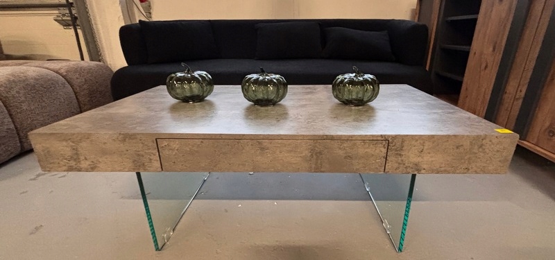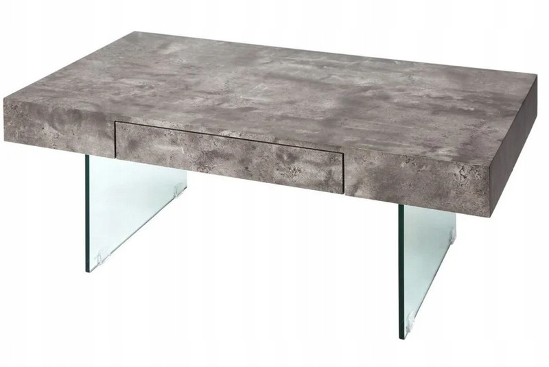 Ten nowoczesny stolik kawowy to połączenie funkcjonalności i efektownego designu, które doskonale podkreśli charakter współczesnego wnętrza. Solidny blat imitujący beton nadaje meblowi industrialny, surowy styl, natomiast eleganckie, przezroczyste szklane nogi dodają mu lekkości i nowoczesnej formy. Dzięki temu stolik świetnie wpisuje się zarówno w loftowe aranżacje, jak i bardziej minimalistyczne przestrzenie.