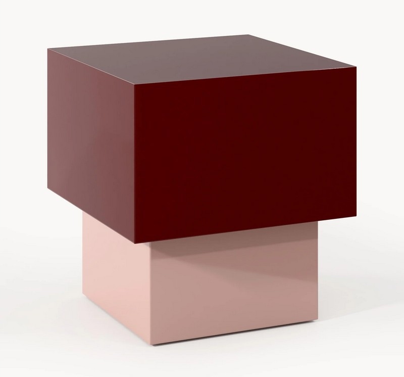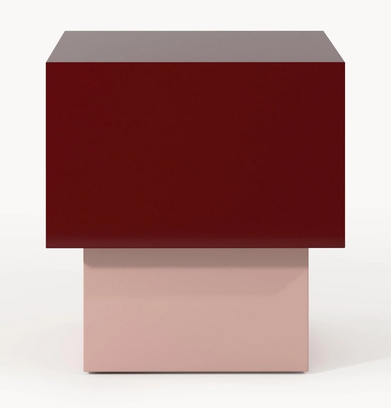 Model w eleganckim połączeniu bordowego blatu i jasnoróżowej, błyszczącej podstawy wnosi do wnętrza wyrazisty, a jednocześnie subtelny kolorystyczny akcent.