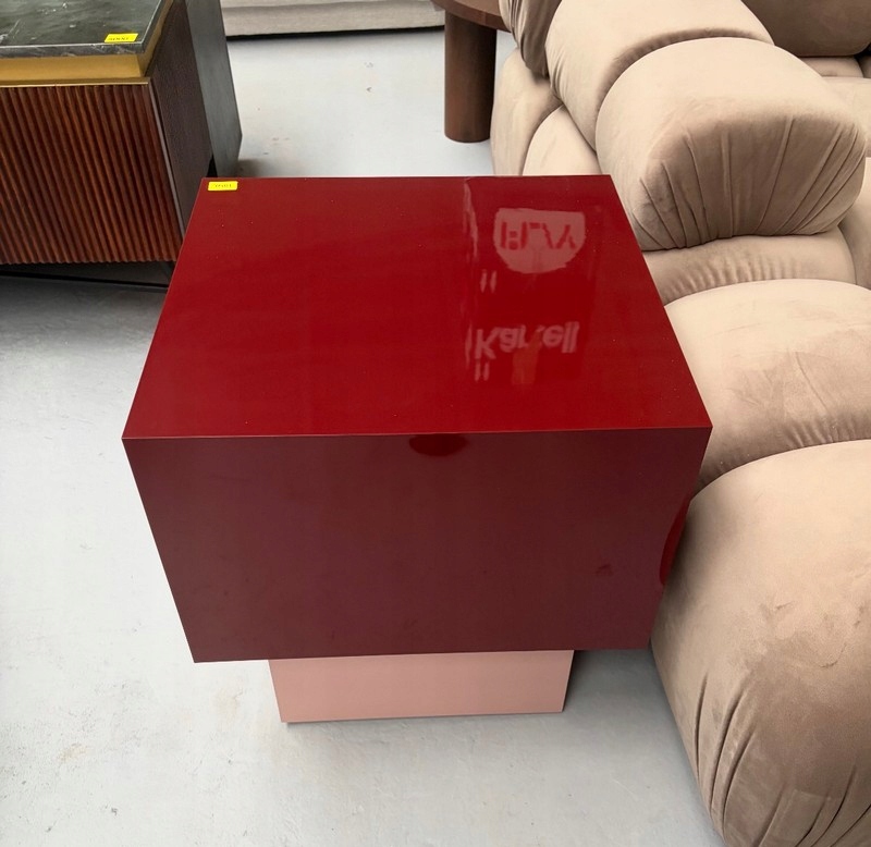 Geometryczna forma kostki oraz błyszczące wykończenie sprawiają, że mebel przyciąga wzrok i doskonale wpisuje się w współczesne aranżacje.