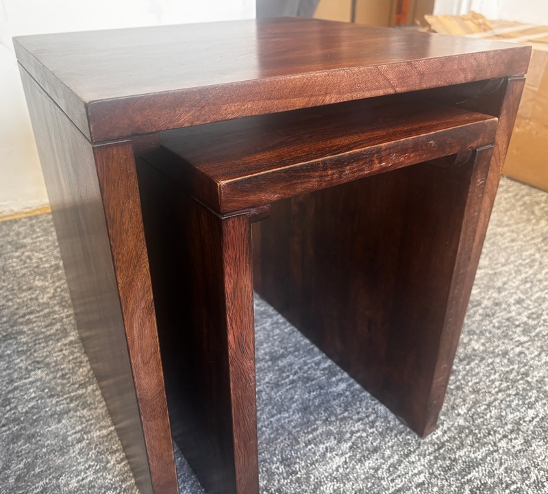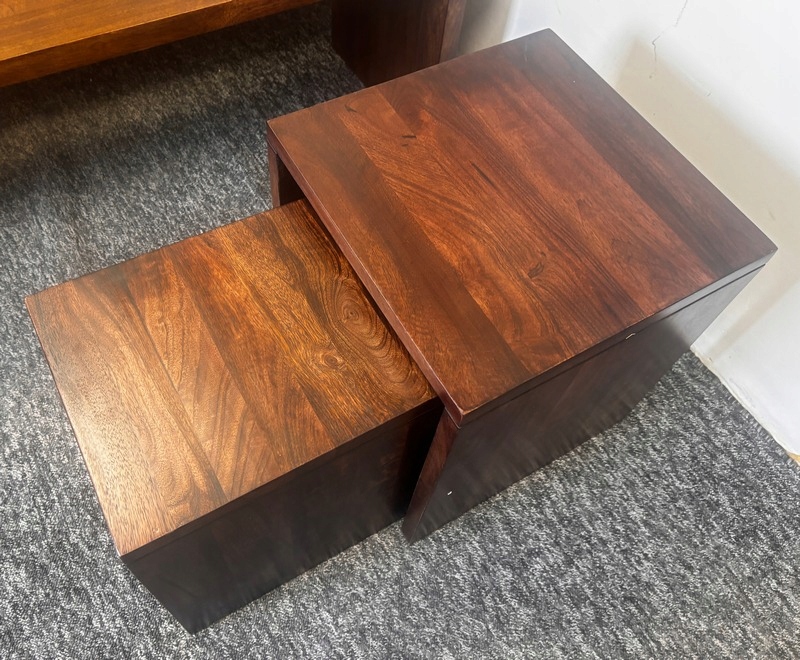 Stoliki boczne Helle z drewna mango to designerski i praktyczny dodatek do każdego wnętrza.