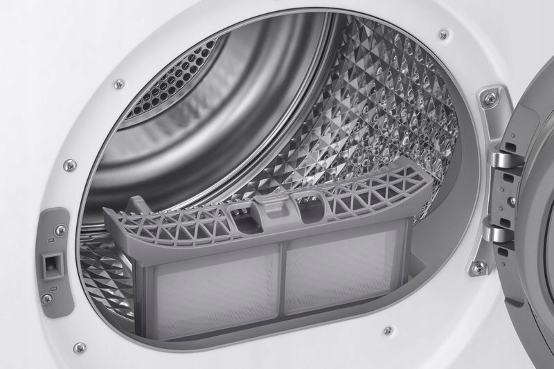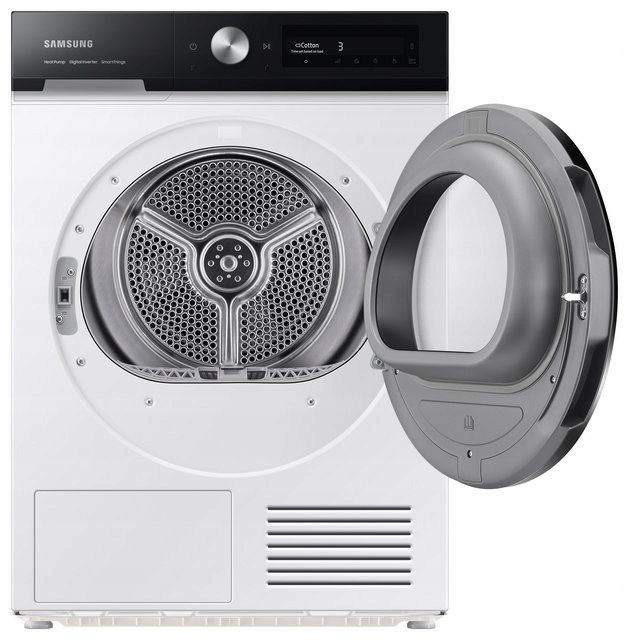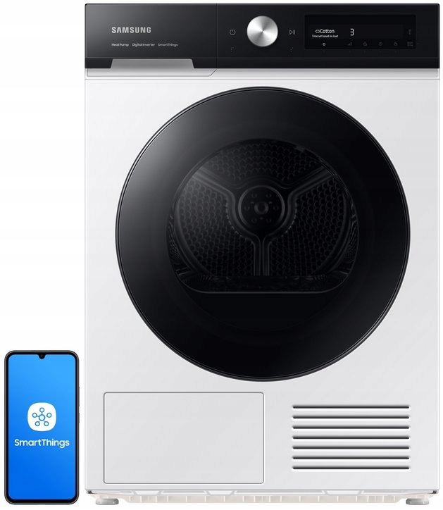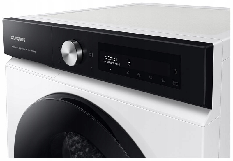 Funkcje: Sterowanie smartfonem, Silnik inwerterowy, Wyświetlacz elektroniczny, Możliwość montażu na pralce, System suszenia pompą ciepła