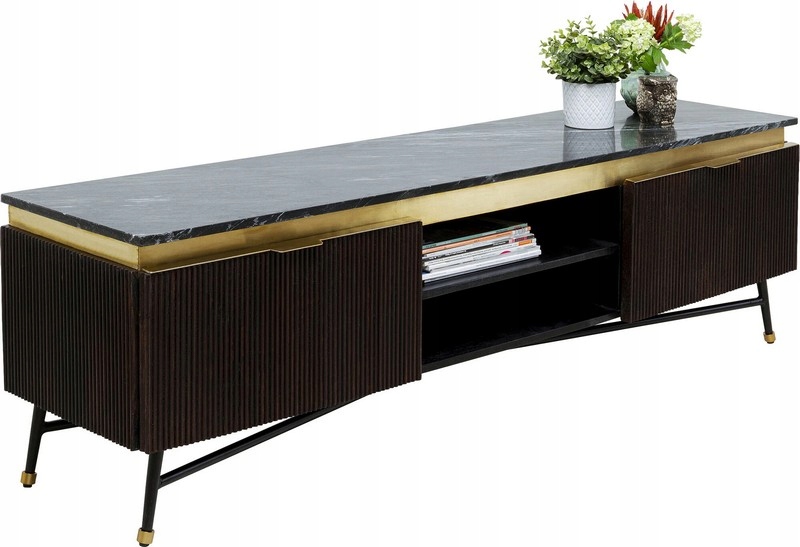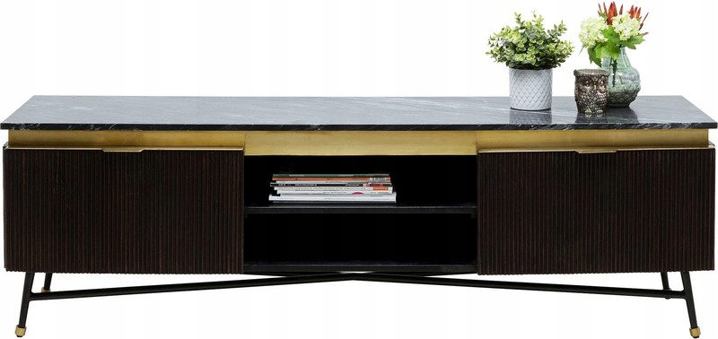 Szafka RTV Catalina łączy naturalne drewno mango z eleganckim marmurowym blatem, tworząc mebel pełen stylu i charakteru. Przestronna powierzchnia pozwala wygodnie ustawić sprzęt RTV, dekoracje czy akcesoria domowe, a solidna konstrukcja gwarantuje trwałość i stabilność.