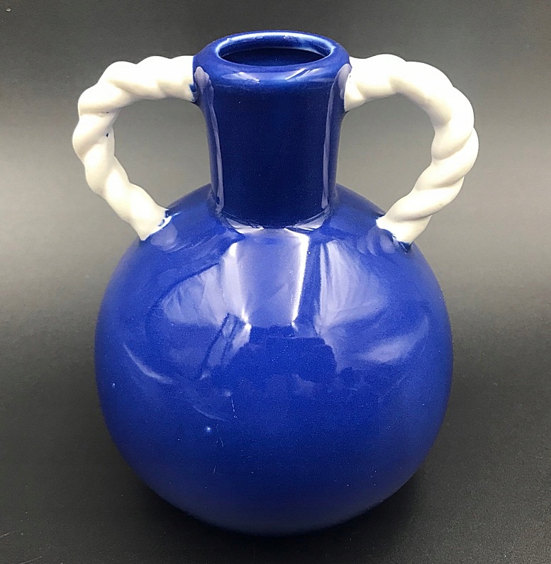 Wazon z amforą w kolorze granatowym, z uchwytami o unikalnym designie, który upiększy Twoje wnętrze.